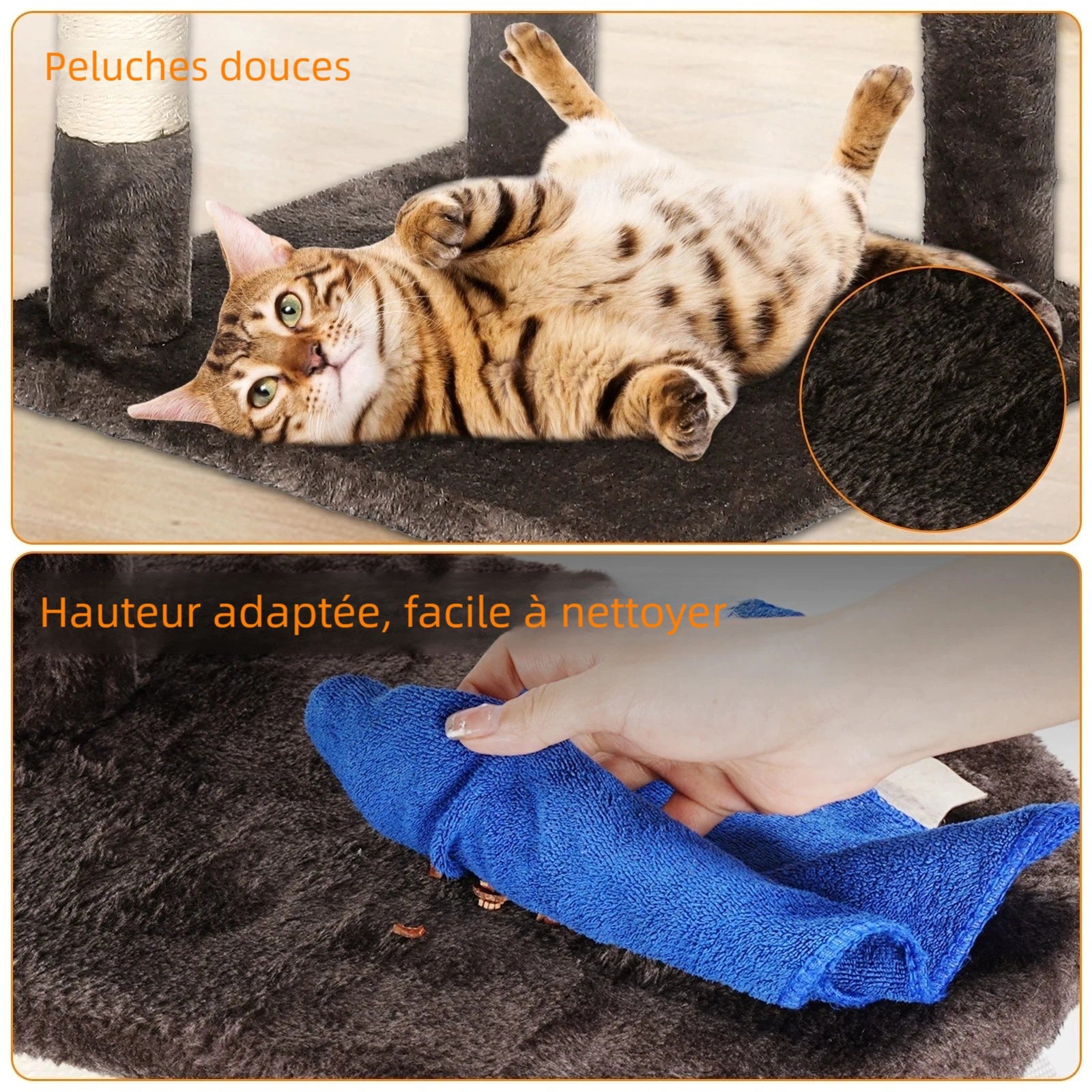 Poteaux à Griffes Robustes : Les poteaux et cordes à gratter en Sisal durable (diamètre d'environ 7-8 cm) fournissent un exutoire essentiel pour l'entretien des griffes de votre chat, détournant son attention de vos tapis et canapés.